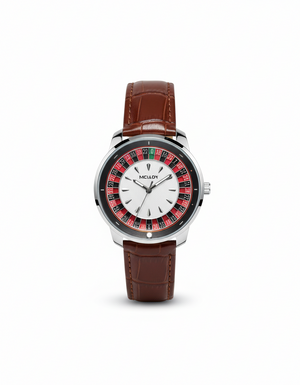 Stand out with this unique Henry Roulette-inspired dial watch. Featuring a striking multi-color roulette ring, sleek silver case, and premium brown leather strap β a bold blend of style, fun, and sophistication for every occasion.